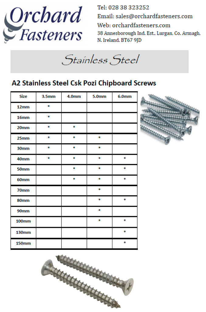 A2 Stainless Steel CSK Pozi Chipboard Screws