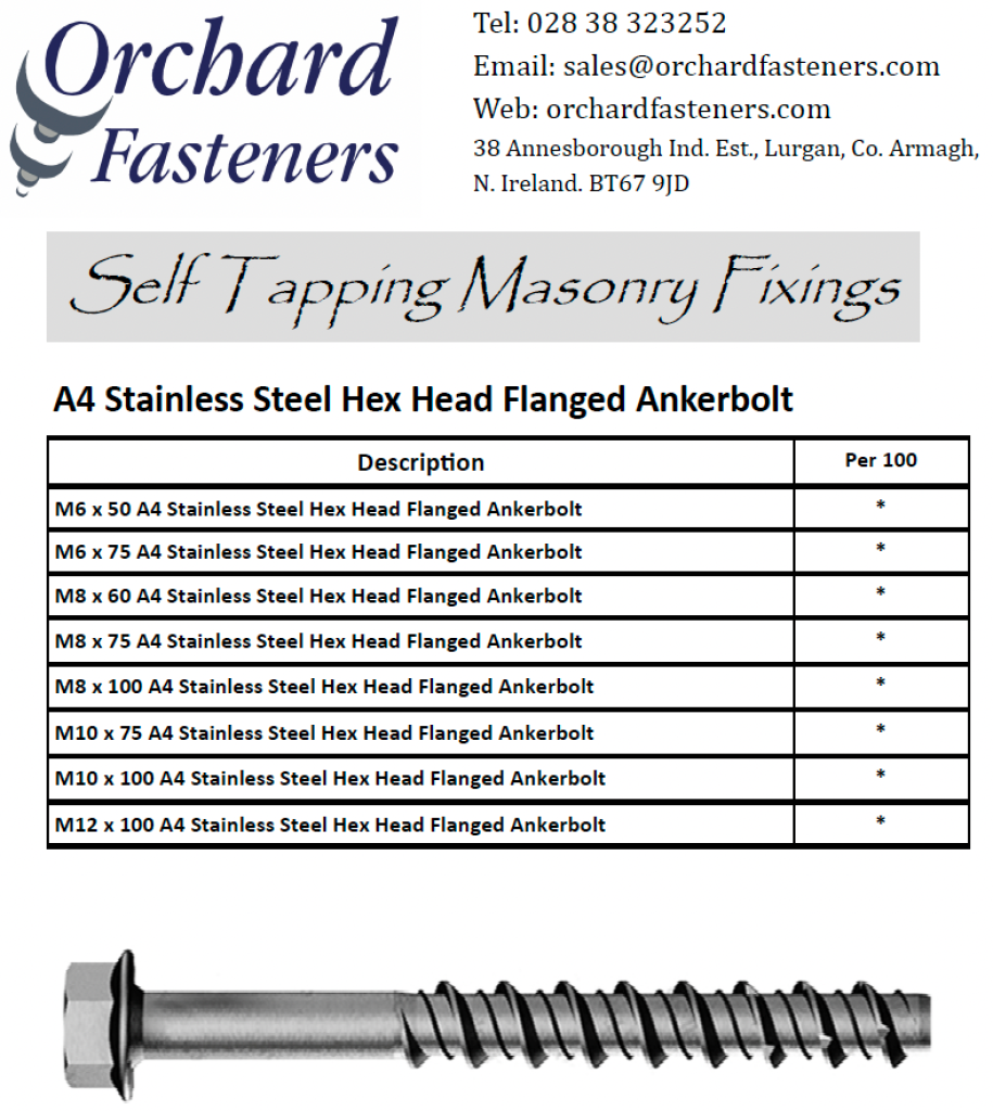 / A4 Stainless Steel Hex Head Flanged Ankerbolt