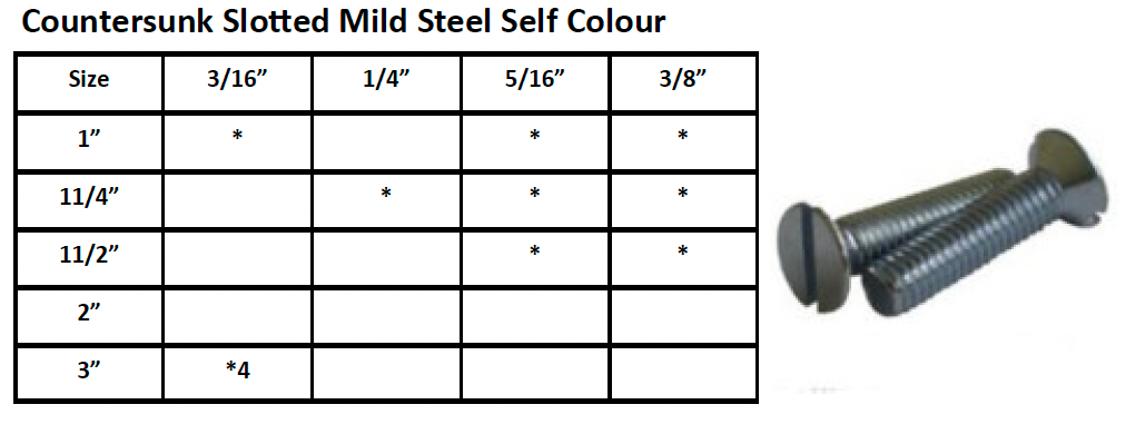 / Countersunk Head Slotted BSW Mild Steel Self Colour
