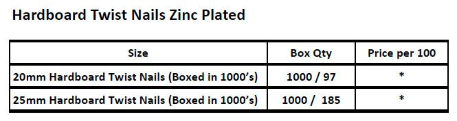 / HARDBOARD TWIST NAILS ZINC PLATED