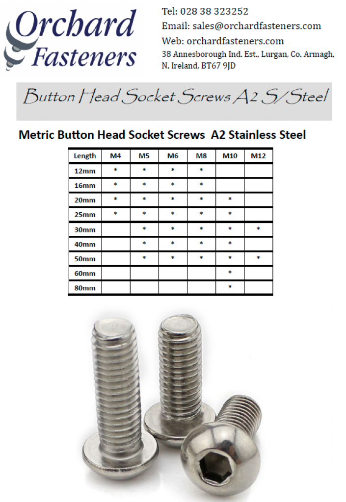 / Metric Button Head Socket Screws A2 Stainless Steel