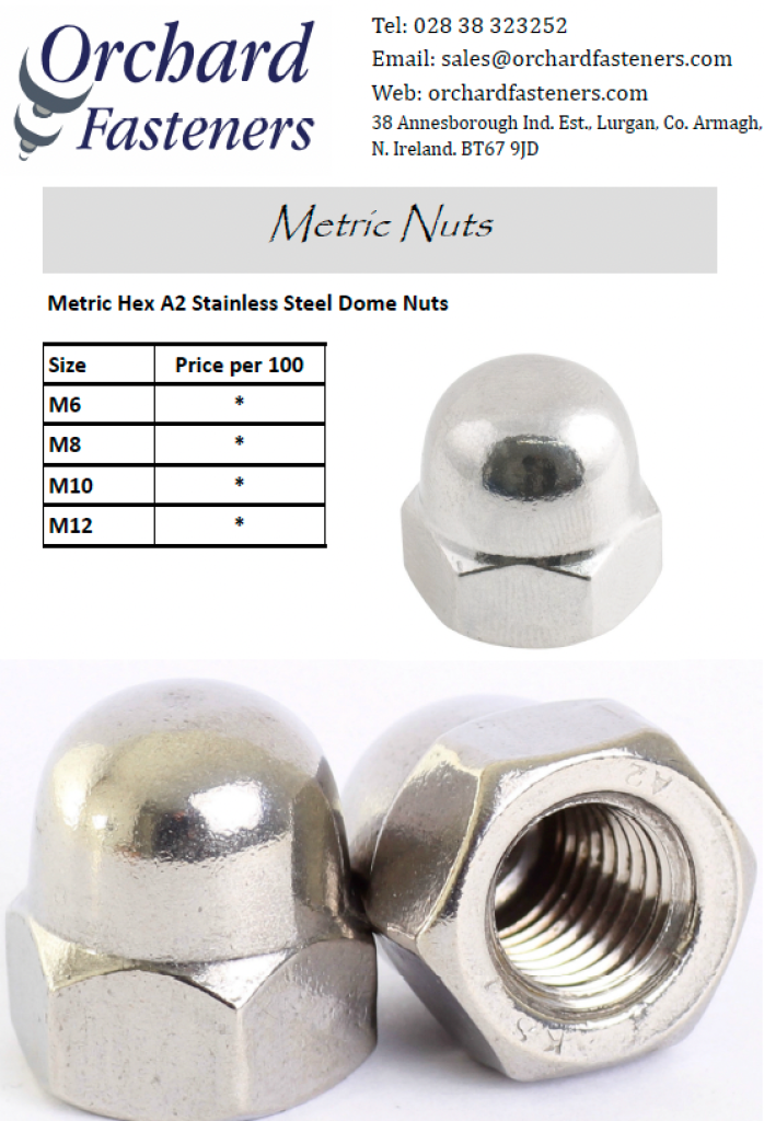 Metric Hex A2 Stainless Steel Dome Nuts