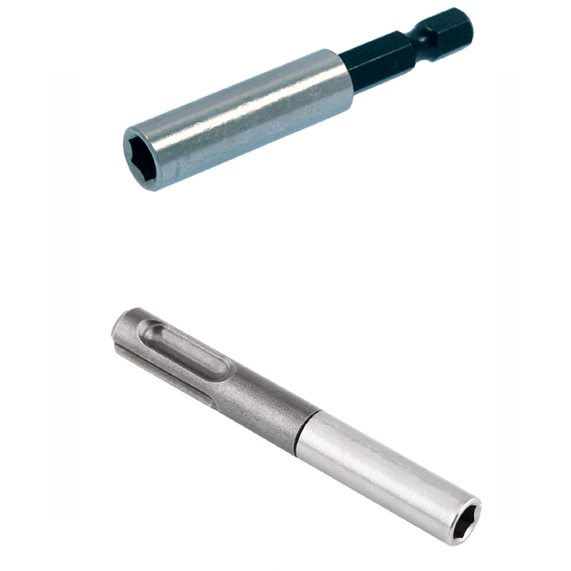 Screwdriver Bit Holders – Silver – 59mm Magnetic – SDS Plus to 1/4″ Hex Converter