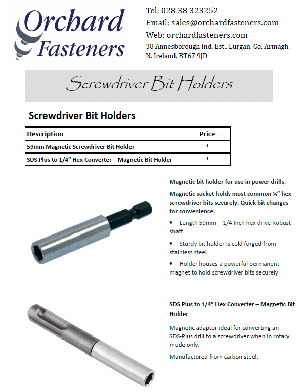 / Screwdriver Bit Holders – Silver – 59mm Magnetic – SDS Plus to 1/4″ Hex Converter