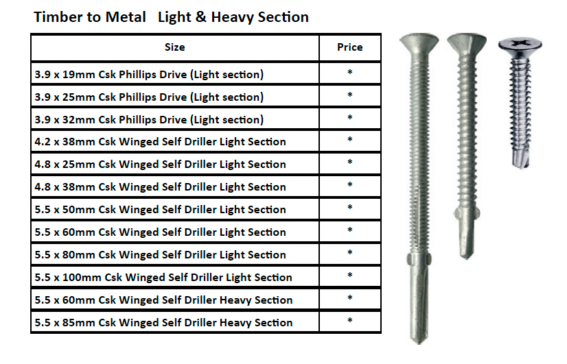 / Self Drilling Timber to Metal Light & Heavy Section