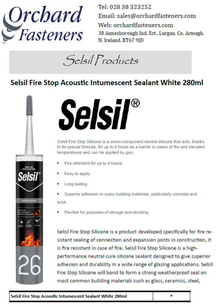 / Selsil Fire Stop Acoustic Intumescent Sealant White 280ml