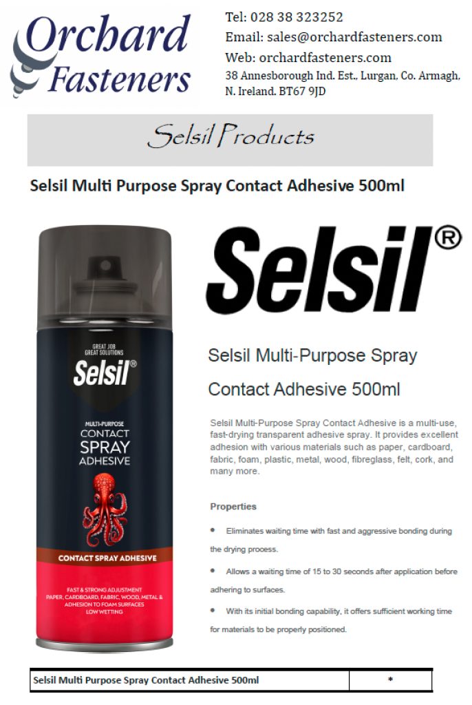 / Selsil Multi Purpose Spray Contact Adhesive 500ml