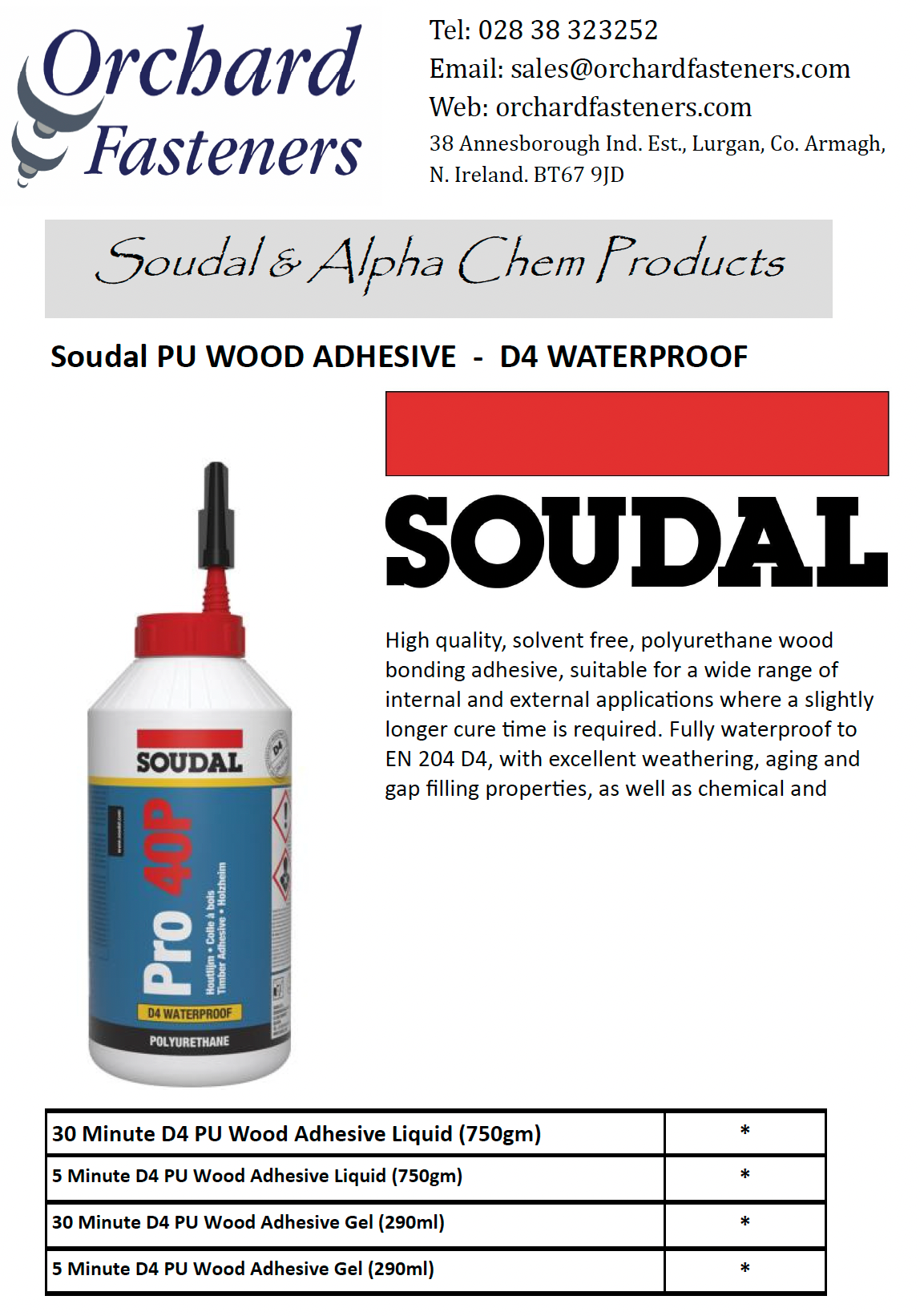 / Soudal PU WOOD ADHESIVE – D4 WATERPROOF